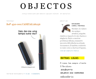 Pouco depois da letrinhas ganharem vida no Webcedário a Dário Blog Network começou a receber inúmeros pedidos de objectos a quererem mostrar que também eles tinham direito a dar a conhecer as suas vidas silenciosas e ignoradas pelos humanos. Depois de termos feito algumas audições a objectos com um talento natural para o universo bloguístico decidimos dar-lhes uma oportunidade para mostrarem o que valem. Não se saíram nada mal…