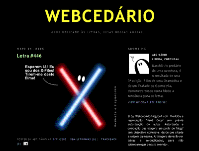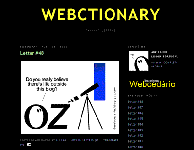 Quando letras e números ganham vida dá nisto. O Webcedário é um microscópio sobre as letras e os números que discretamente fazem parte do nosso dia a dia. Ali podemos encontrar as suas crises existenciais, os seus problemas quotidianos, os seus enganos e desenganos. Se porventura quer perceber melhor os carateres que usa diariamente para se fazer entender, então este é um sítio a visitar.